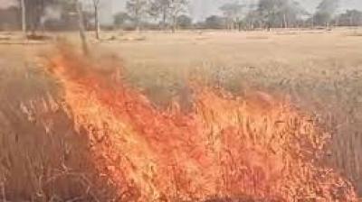 धमधा के खिलोरा खुर्द में भीषण आग, 500 एकड़ गेहूं की फसल राख