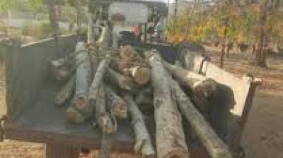सागौन-हल्दू लकड़ी से भरा ट्रैक्टर जब्त, वन विकास निगम की कार्रवाई