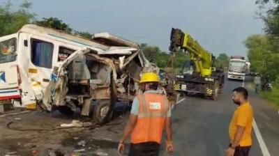 शिवपुरी में ट्रैवलर-ट्रक की भिड़ंत, 4 की मौके पर मौत