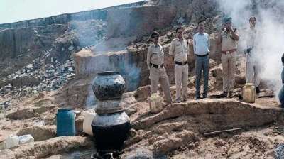 34 हजार रुपए कीमत की अवैध कच्ची शराब व महुआ लाहन जब्त
