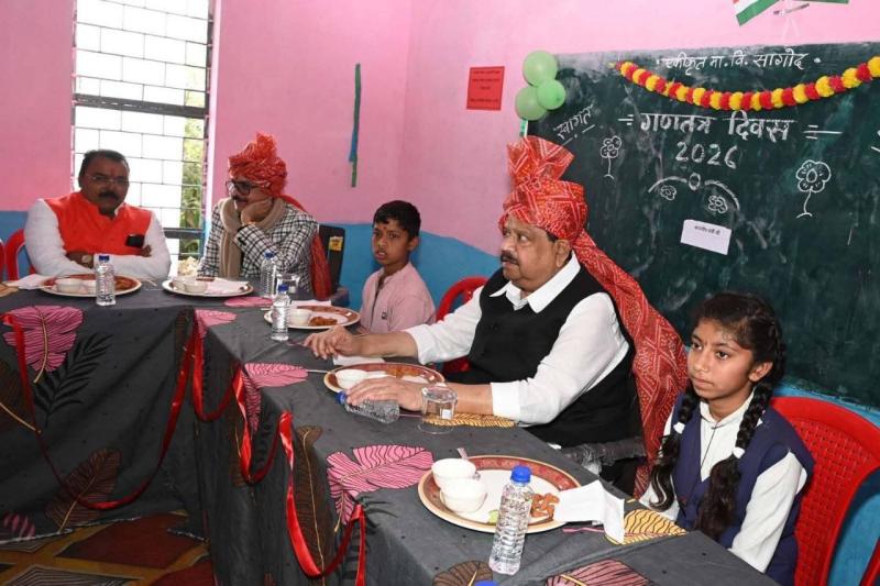 गणतंत्र दिवस समारोह के मुख्य अतिथि सूक्ष्म, लघु एवं मध्यम उद्यम मंत्री मध्यप्रदेश शासन श्री चेतन्य काश्यप ने ग्राम सागोद के शासकीय माध्यमिक विद्यालय में बच्चों के साथ भोजन किया। मध्यान्ह भोजन कार्यक्रम में विधायक ग्रामीण मथुरालाल डामर, महापौर श्री प्रहलाद पटेल, जिला अध्यक्ष श्री प्रदीप उपाध्याय, श्री विप्लव जैन, कलेक्टर श्रीमती मिशा सिंह, पुलिस अधीक्षक श्री अमित कुमार, एडीएम डॉ. शालिनी श्रीवास्तव, एएसपी श्री राकेश खाखा, एसडीएम आर्ची हरित, जिला शिक्षा अधिकारी अनिता सागर, सरपंच कैलाश जी, उपसरपंच राजेश धाकड़, श्री सोनी, श्री अशोक धाकड़ सहित प्रशासनिक अधिकारियों एवं जनप्रतिनिधियों ने स्कूली बच्चों के साथ भोजन किया।