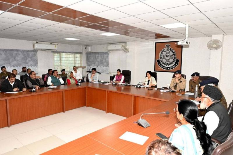 बैठक में पुलिस अधीक्षक श्री अमित कुमार ने कहा कि पहले की तुलना में अधिक महिला बल की ड्यूटी लगाई जाएगी तथा महिला पुलिस स्कूटी टीम के माध्यम से चेन खींचने वालों पर निगरानी रखेगी। जुलूस एवं चल समारोह निकालने के लिए आयोजक अनुमति संबंधी आवेदन समय पर प्रस्तुत करें जिससे व्यवस्था उपलब्ध कराई जा सके। बैठक के दौरान समिति सदस्यों से सुझाव लिए गए तथा तदनुसार कार्रवाई के लिए संबंधित अधिकारियों को निर्देश दिए गये ।
