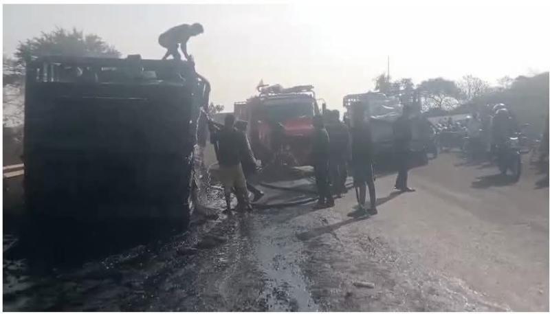 के थाना सैलाना क्षेत्र में सरवन घाट पर रिफाइंड तेल से भरे टैंकर में लगी आग,