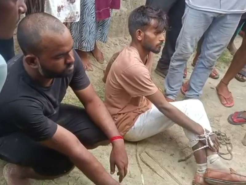 प्रतापगढ़: संदिग्ध गतिविधियों पर ग्रामीणों ने दो युवकों को पकड़ कर खंभे से बांधा