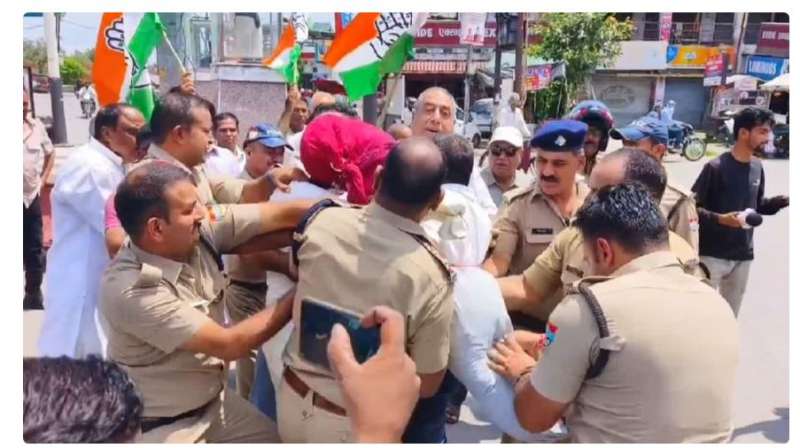 कांग्रेस नेताओं को हिरासत में लेने का किया विरोध