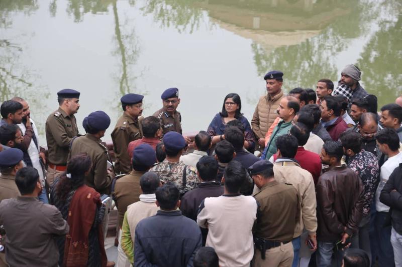 कलेक्टर श्रीमती रूचिका चौहान एवं वरिष्ठ पुलिस अधीक्षक श्री धर्मवीर सिंह ने नवग्रह मंदिर के अंदर एवं बाहर प्रागंण का निरीक्षण किया। उन्होंने वहां पर आने वाले श्रद्वालुओं के लिए दर्शन की व्यवस्था बनाने के निर्देश दिए। उन्होंने कहा कि उदघाटन अवसर पर हजारों की संख्या में यहां पर भक्त आएंगे। ऐसे में सभी भक्तों को भगवान के दर्शन हो सकें, इसके लिए कतारें बनाने की व्यवस्था की जाए। वरिष्ठ पुलिस अधीक्षक श्री धर्मवीर सिंह ने नवनिर्मित नवग्रह मंदिर में आयोजित प्रस्तावित कार्यक्रम के दृष्टिगत कानून व्यवस्था के संबंध में निरीक्षण किया। इसके साथ ही सुगम यातायात व्यवस्था एवं पार्किंग व्यवस्था के संबंध में भी निरीक्षण कर आवश्यक दिशा-निर्देश दिए।