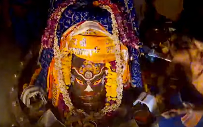 श्री महाकालेश्वर मंदिर के पुजारी ने बताया कि विश्व प्रसिद्ध श्री महाकालेश्वर मंदिर में अश्विन माह शुक्ल पक्ष की पंचमी तिथि वार शनिवार सुबह 4 बजे भस्म आरती हुई। इस दौरान वीरभद्र जी से आज्ञा लेकर मंदिर के पट खुलते ही पण्डे पुजारियों ने गर्भगृह में स्थापित सभी भगवान की प्रतिमाओं का पूजन किया। जिसके बाद भगवान महाकाल का जलाभिषेक दूध, दही, घी, शक्कर पंचामृत और फलों के रस से किया गया।