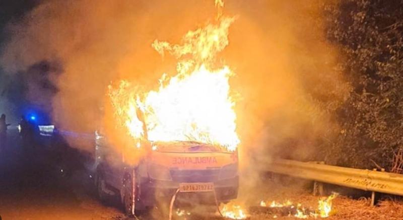 गोरखपुर: चलती एंबुलेंस में लगी आग, ऑक्सीजन सिलिंडर धमाके से फटा
