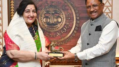 मुख्यमंत्री विष्णु देव साय से पद्मश्री अनुराधा पौडवाल ने सौजन्य मुलाकात की