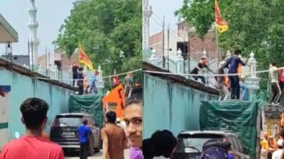 तुगलकाबाद में शोभायात्रा के दौरान मस्जिद पर भगवा झंडा, पुलिस जांच में जुटी